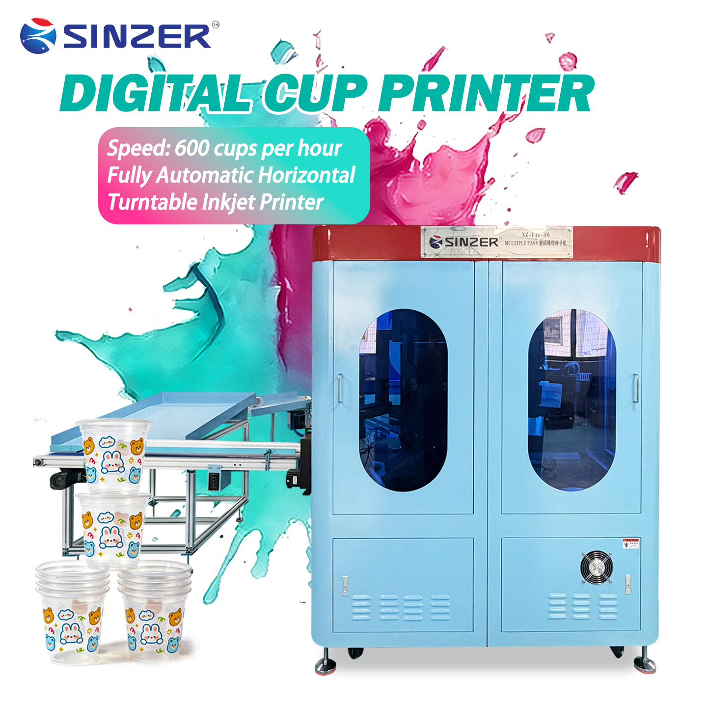 • Industrial Multi Pass Digital Printing Machine Supporting UV and Water Based Inks for Food Grade Paper Cup and Plastic Container Production
